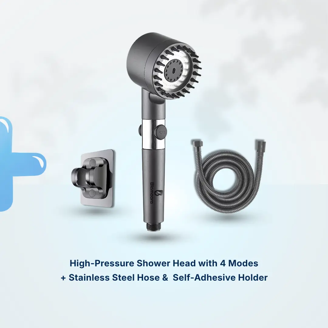 ✓ High-Pressure Shower Head + Stainless Steel Hose + Self-Adhesive Holder